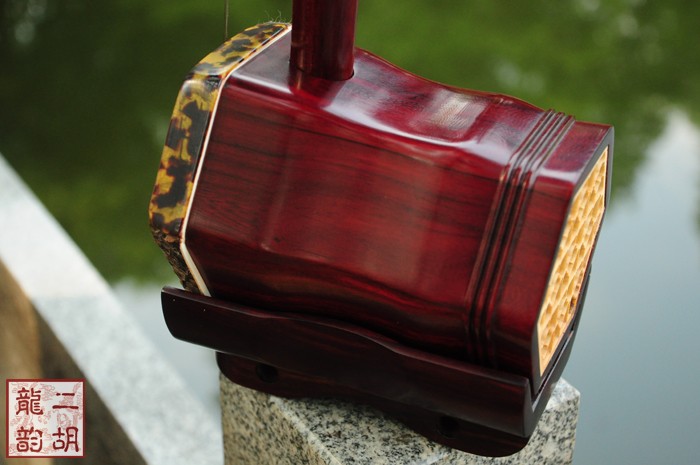 產(chǎn)品介紹 龍韻藏品級紫檀二胡選用上等紫檀木料、野生金花蟒皮佐以獨家工藝精心制作而成。