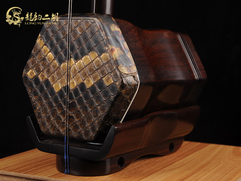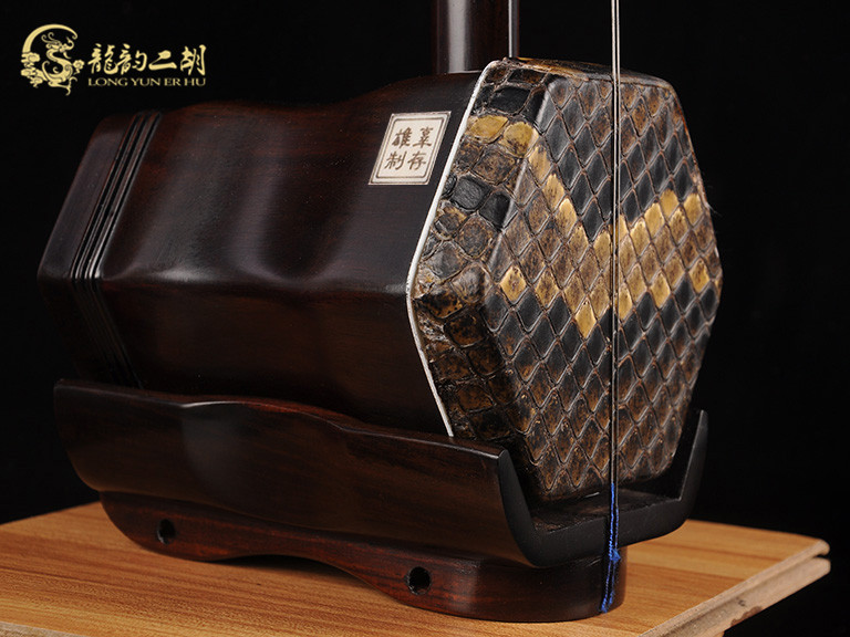 產(chǎn)品介紹 龍韻藏品老紅木二胡選用上等老紅木、野生金花蟒皮佐以獨(dú)家工藝精心制作而成。