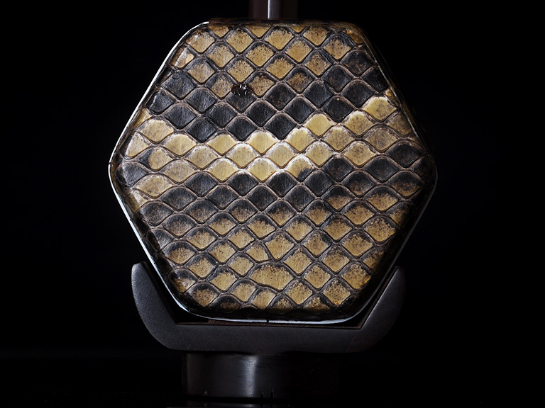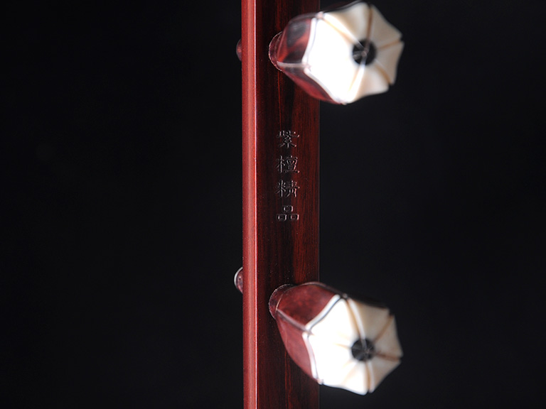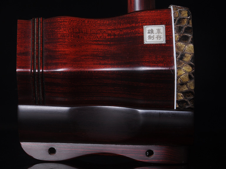 產(chǎn)品介紹 龍韻藏品級紫檀二胡選用上等紫檀木料、野生金花蟒皮佐以獨家工藝精心制作而成。