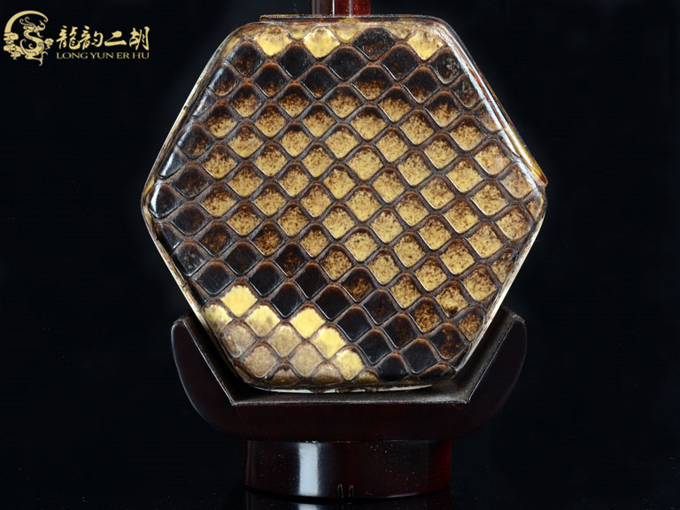而且選用的是蟒皮中上好部位。如此考究的選材再加上上乘制作工藝,從而使整琴造型