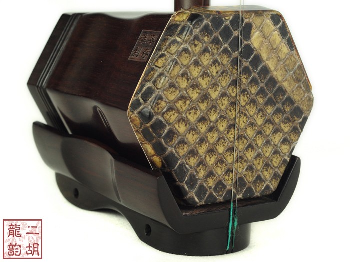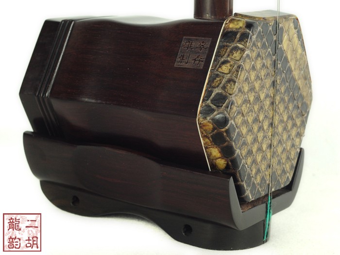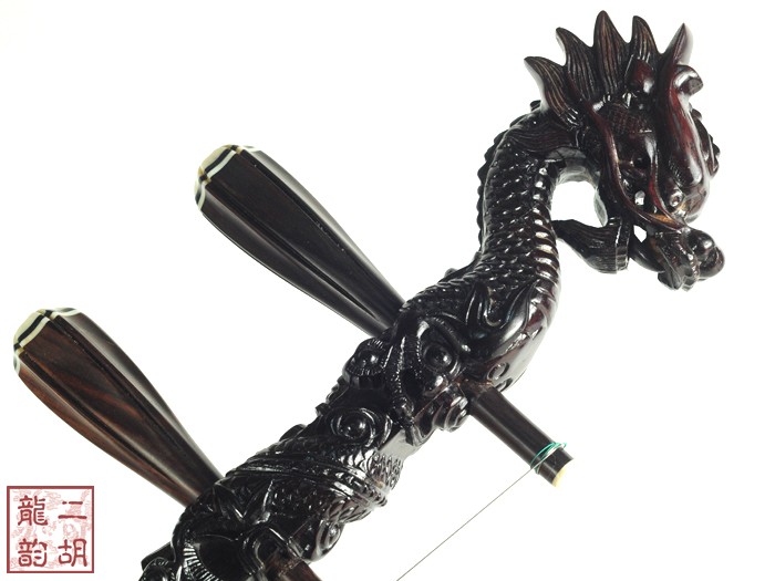 產(chǎn)品介紹 本款二胡選用上等老紅木木料、上等蟒皮佐以精良制作工藝,龍頭雕刻得栩栩如生